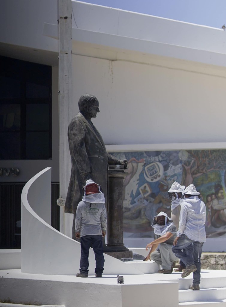 Jorge Sanén aclaró: “estamos en la mejor disposición y el interés de que ya se reinstale la estatua y el asta bandera, nada más que estamos viendo los aspectos legales para poder dar continuidad y llevarla a cabo”.