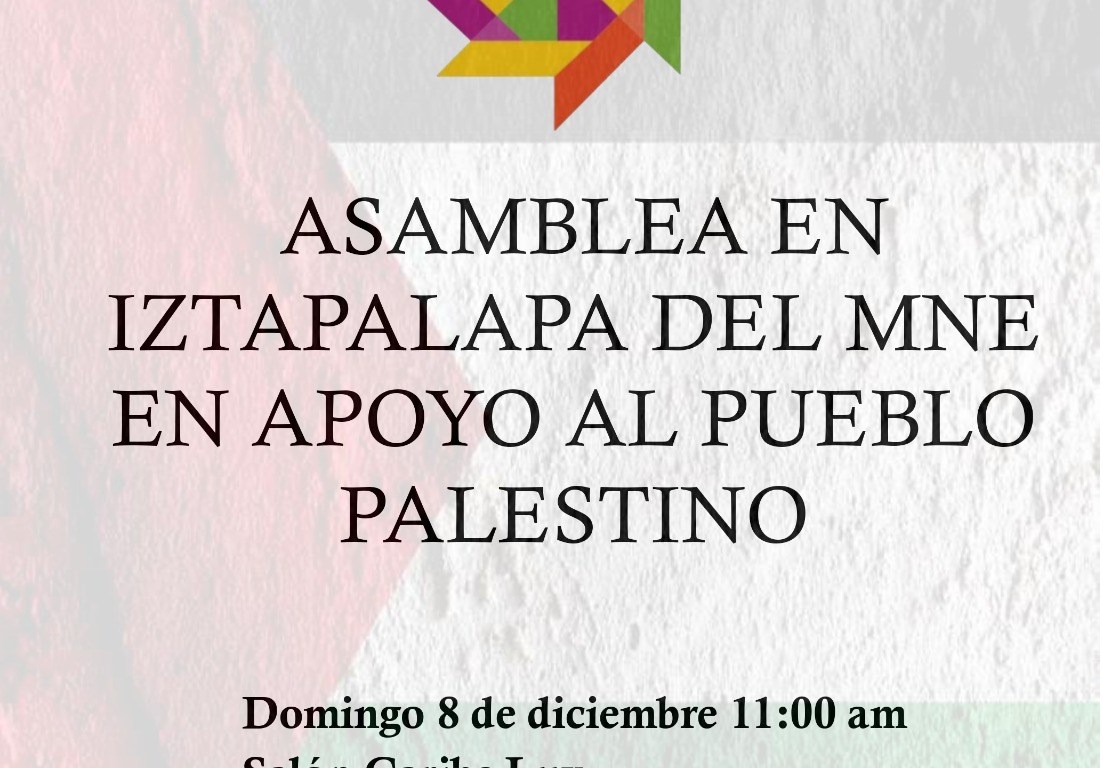 Cordial invitación a la Asamblea en Iztapalapa del MNE en apoyo al pueblo palestino.