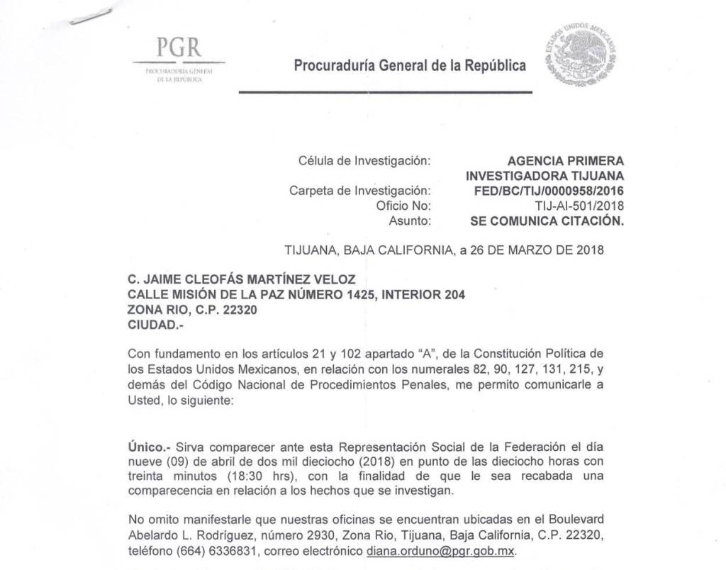 Ante la denuncia que presenté en la PGR en el 29 de octubre del 2016 contra Donald Trump, por Defraudación Fiscal, Violacion a la Constitución Mexicana y a la Ley de Inversión Extranjera, el 9 de abril del 2018 me citó la PGR para ampliar mi denuncia, en cuya diligencia, la Agente del Ministerio Publico, Lic. Diana Angelica Orduña Cazares, quien me tomó la declaración, me informó que habían solicitado al Instituto Nacional de Migración, la visa de trabajo para los negocios inmobiliarios que Donald Trump y su hija Ivanka habían realizado en Baja California y le contestaron que estos, jamás habían realizado dicho trámite. Lo que confirmó Donald Trump y su Hija realizaron negocios sin Visa de Trabajo” es decir llevaron a cabo actividades comerciales en calidad de indocumentados.