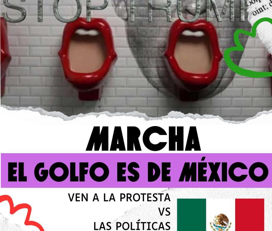 La Coalición Binacional vs Trump con redes locales convoca a movilizarse ese sábado 25 bajo el lema EL GOLFO ES DE MÉXICO en sitios de: Tamaulipas, Veracruz, Tabasco, Campeche y Yucatán.