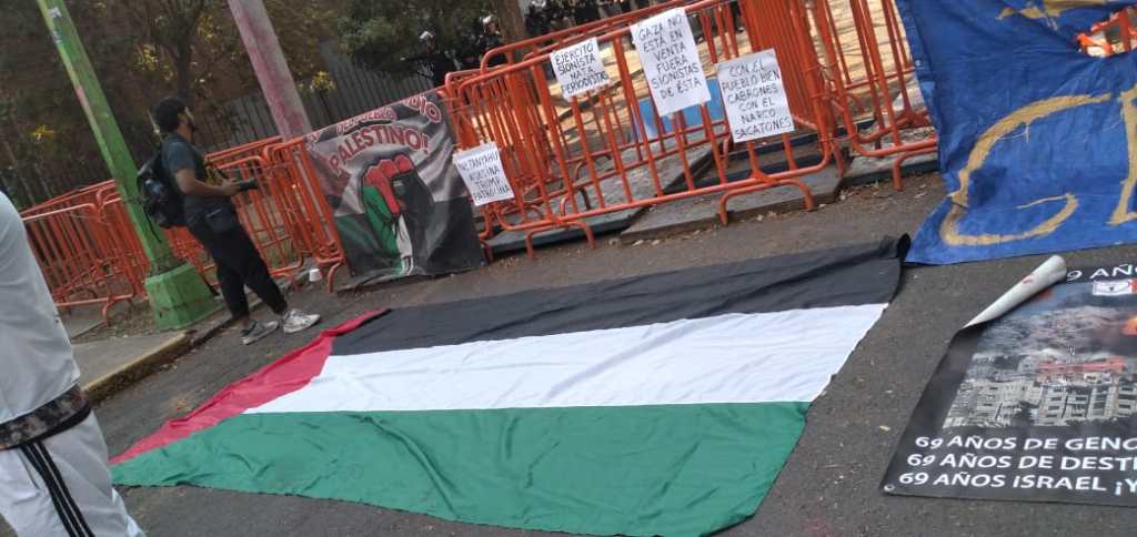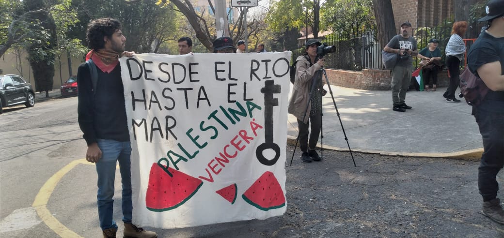 Los inconformes se manifestaron ante la embajada de Israel en Sierra Madre 215, Lomas de Chapultepec. Algunos llegaron desde la lejana Facultad de Ciencias Políticas y Sociales de la UNAM donde el lunes en asamblea, acordaron movilizarse ante la presencia en territorio mexicano del vocero.