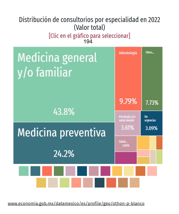 En 2020, en materia de salud en OPB, el 34.4% de la población fue atendida por el llamado Seguro Popular, el 23% fue atendida por el Instituto Mexicano del Seguro Social (IMSS); es decir, las opciones de atención de salud más utilizadas fueron Centro de Salud u Hospital de la SSA, con 75 mil 600 pacientes; el IMSS, que atendió a 52 mil 100 personas y el ISSSTE, que dio servicios a 35 mil 100 habitantes.