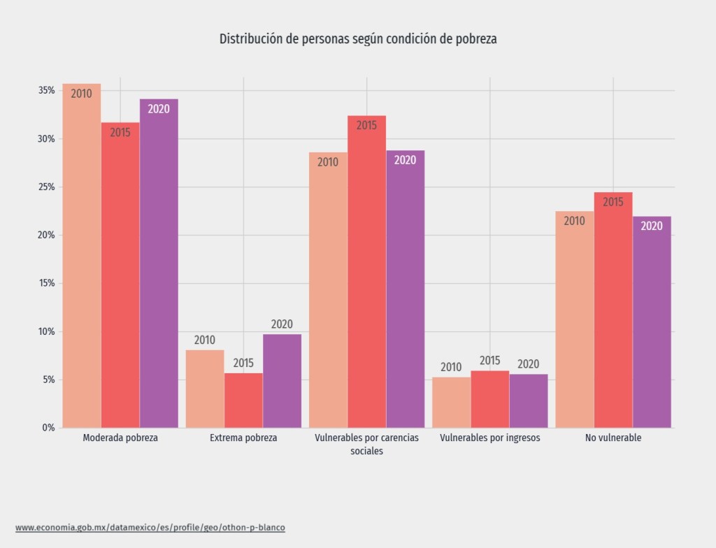 Othón P. Blanco, municipio donde está la capital del estado de Quintana Roo, ha sufrido un decremento en su población desde el 2010, no solo por fallecimientos, sino porque muchas familias abandonan la ciudad para trabajar en otros países; aunado a la falta de oportunidades de empleo, acceso a la salud, a la educación y proliferación de elementos que conforman la pobreza.