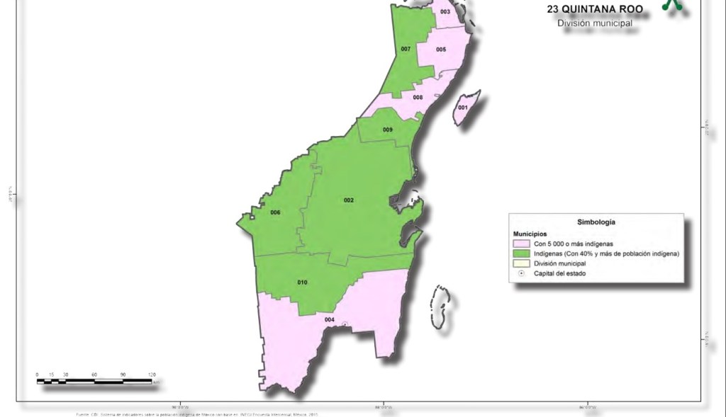 El último censo en el 2020, detalla que en Cozumel hay 26 mil 886 personas de pueblos originarios; Felipe Carrillo Puerto cuenta con 72 mil 148; Isla Mujeres con 5 mil 540; Othón P. Blanco, 46 mil 602; Benito Juárez, 190 mil 341; José María Morelos, 32 mil 200; Lázaro Cárdenas, 20 mil 824; Playa del Carmen, 56 mil 326; Tulum con 17 mil 830 y; Bacalar, con 19 mil 547 indígenas.