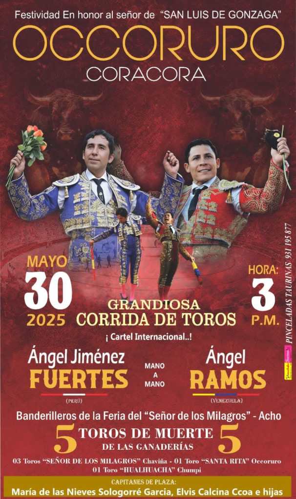 El diestro tachirense cierra el mes de las flores con un mano a mano de antología, teniendo como alternante al matador de toros peruano Ángel Jiménez Fuertes, quien al igual que el diestro venezolano se aplica muy bien, dada su su habilidad y experiencia, en los tres tercios de la lidia.
