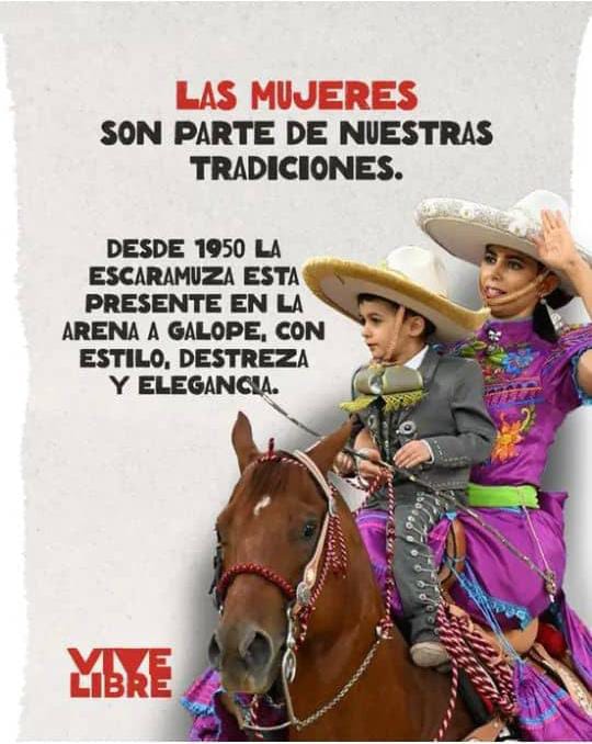La escaramuza es una expresión ecuestre de las mujeres dentro de la charrería, el rodeo mexicano. Consiste en un grupo de mujeres que se montan en los caballos sincronizadas en coreografías, vistiendo trajes femeninos tradicionales. Las escaramuzas montan el caballo de lado, con las piernas en una sola dirección, y realizan figuras y movimientos a gran velocidad, todo ello mientras lucen atuendos típicos mexicanos…