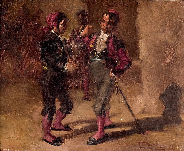 Dos toreros echan la tarde mientras le dan a la botella. Tras una pequeña escena del tipo «pseudobodegón» aliñada con un zapato que se sitúa en la esquina inferior izquierda, encontramos el gran plano principal, los dos personajes, que se nos muestran abatidos y eso: borrachos, sentados en el suelo de una habitación que debemos imaginar.