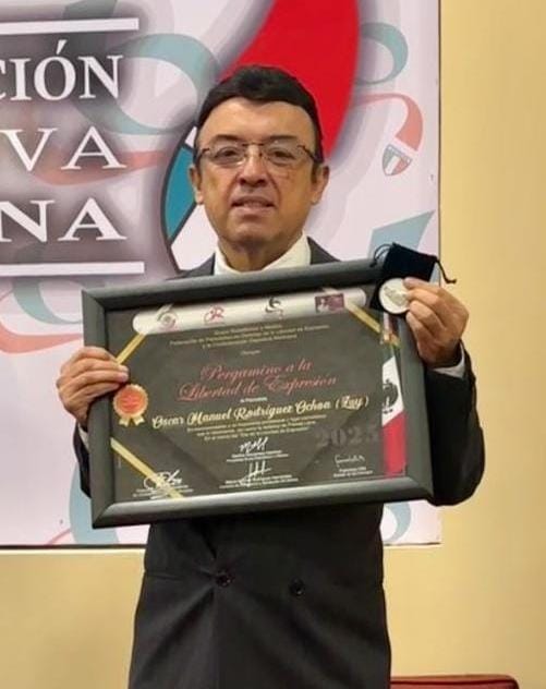 Este año el cartonista Oscar Manuel Rodríguez Ochoa “Luy”, quien cumple 44 años de trayectoria, recibe por tercera ocasión (2019, 2024 y 2025) el Pergamino a la Libertad de Expresión, que otorgan el Grupo Radiofónico y Medios, la Federación de Periodistas en Defensa de la Libertad de Expresión y la Confederación Deportiva Mexicana.