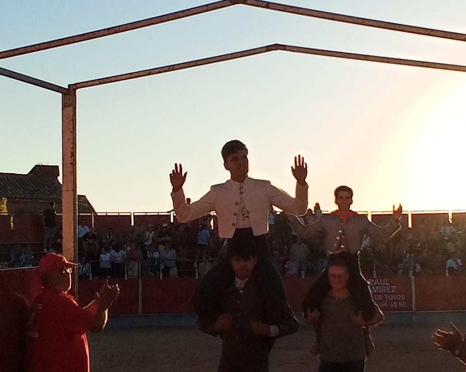 Con la salida a hombros de Rando Miguel y Antonio Ortega, la afición taurina de Villamanrique de Tajo despidió una novillada que confirmó que el futuro de la fiesta brava tiene en sus manos a dos jóvenes en formación con madera de gran torero. Carlos Alexis Rivera CNP 10746
