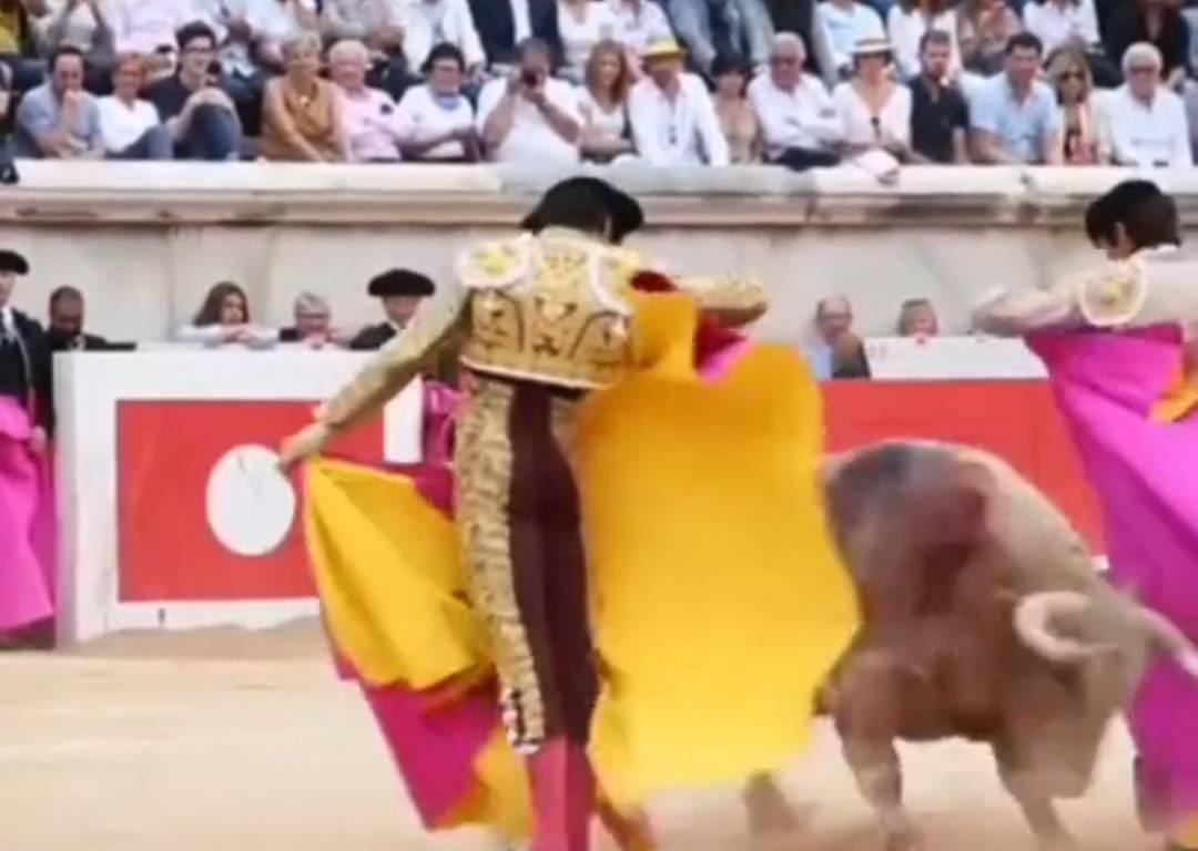 El peruano Andrés Roca Rey y el francés Sebastián Castella toreando con capotes de brega a un toro de lidia al alimón… también se hace con un sólo capote, ya decía Octavio Paz: «la Tauromaquia es poesía en movimiento».
