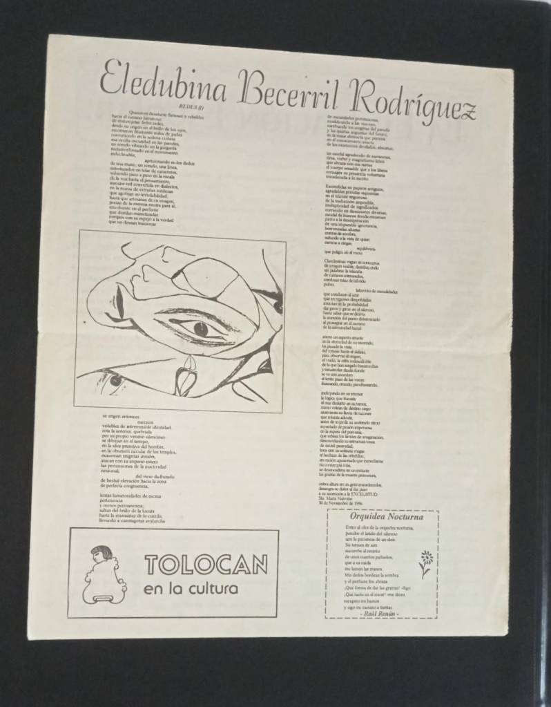 Para ser citado : Becerril Rodríguez, E. (1997). Redes I, Tolocan en la Cultura, suplemento dominical del periódico 8 columnas, portada, 5 de Enero 1997, Toluca, Estado de México.