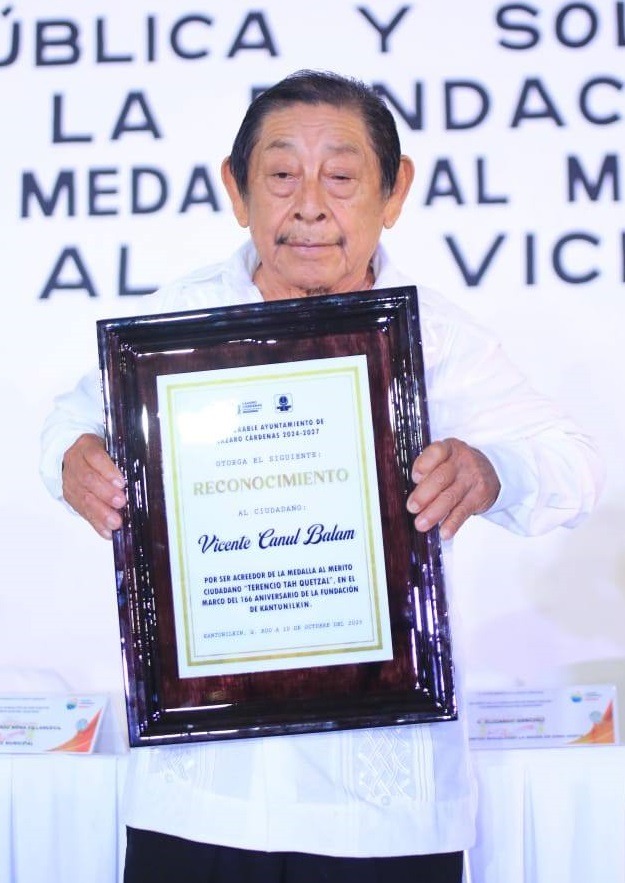 Entregan Medalla al Mérito Ciudadano “Terencio Tah Quetzal” a Vicente Canul Balam