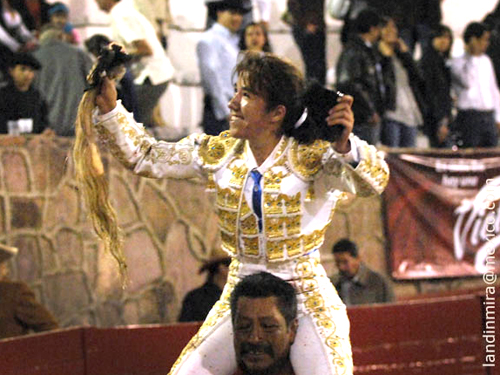 foto 3: Salida a hombros tras indultar a «Comodín» en Zacatecas. Landín-Miranda