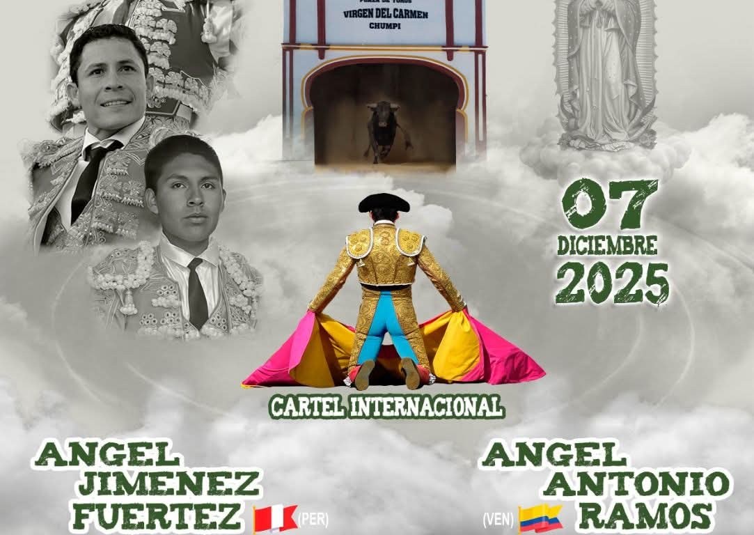 Este domingo 07 de diciembre se presenta el torero venezolano ÁNGEL RAMOS en la corrida guadalupana a celebrarse en el distrito de Chumpi Parinacochas, Ayacucho.