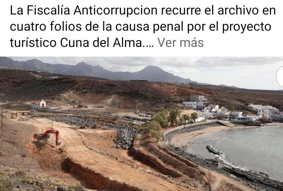 La Fiscalía ha recurrido el auto que archivó en apenas cuatro folios la causa penal que investigaba desde este noviembre si cargos públicos, técnicos y promotores del proyecto turístico Cuna del Alma, en el Puertito de Adeje (sur de Tenerife), habían cometido delitos contra la ordenación del territorio y el medio ambiente, falsedad documental y prevaricación, entre otras cosas, en la tramitación de la polémica iniciativa.
