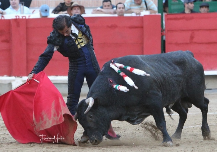 Antonio Suárez con un toro de San Antonio en Mérida. Foto: Federico Montes.