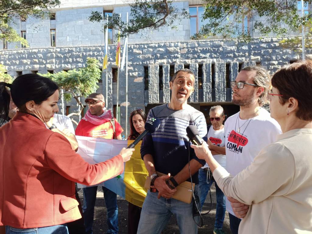 Tal como anunciamos en días pasados, este lunes hemos presentado denuncia administrativa contra el Gobierno de Canarias por actuaciones de dudosa legalidad que entendemos además contrarias al interés general de Canarias, y lo hemos hecho celebrando rueda de prensa frente a Presidencia del Gobierno en Santa Cruz de Tenerife, pese a la dificultades con las que nos hemos encontrado cuando la Policía Autonómica nos ha tomado los datos y ha interrumpido la rueda de prensa para obligarnos a retirar la mesa y las sillas que habíamos habilitado al efecto para atender a los medios (como se observa en las fotos: al inicio sentados y al final de pie).