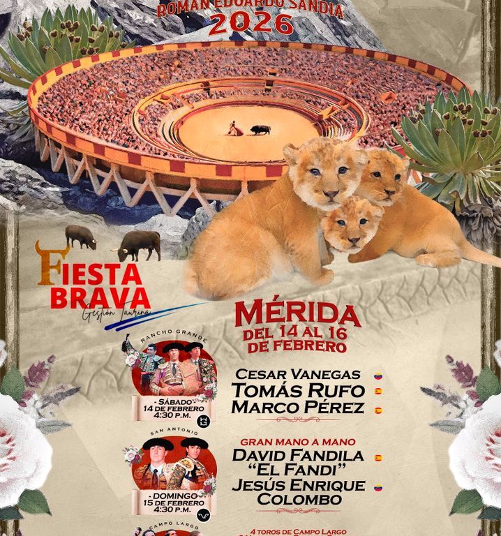 Sábado 14 de febrero. Toros de Rancho Grande y El Prado para César Vanegas, Tomás Rufo y Marco Pérez.