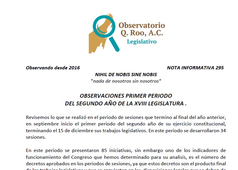 Con sesiones que duran dos horas en promedio, el debate en la 18ª Legislatura es prácticamente nulo, afirma el Observatorio Legislativo de Quintana Roo en su boletín 295 que comenzó a circular este 27 de enero.