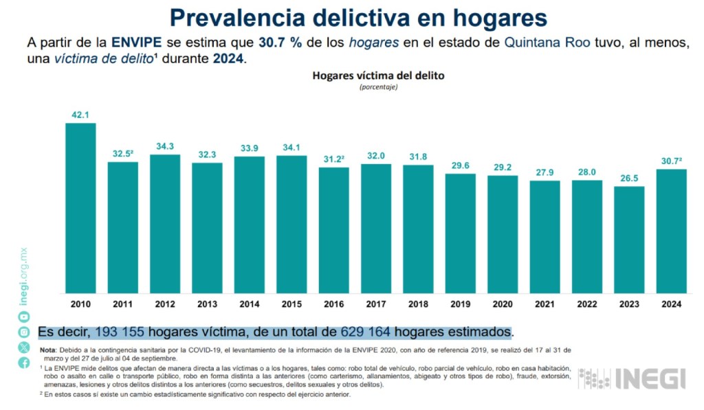La mayoría de los que nos dedicamos al análisis (atinado o no) de la situación política-social que viven los habitantes de Quintana Roo, estamos ocupados en las candidaturas rumbo al 2027, unos mostrando las virtudes del oficialismo, otros justificando que es necesario un cambio en la manera de gobernar en el Estado o Municipio. Sin embargo, hay datos alarmantes en materia de Seguridad Ciudadana que cualquiera de quienes aspiren a gobernar Quintana Roo tienen que tomar en cuenta y, es el incremento de los delitos en términos generales en el estado. Digo esto, porque de acuerdo con datos del Secretariado Ejecutivo del Sistema Nacional de Seguridad Pública, en 2024 se cometieron 53 mil 629 delitos en Quintana Roo, con un incremento de 2 mil 213 delitos en el 2025, es decir, al concluir el año la suma de actos delictivos llegó a 55 mil 842 delitos; es decir, un 4.12 por ciento más. Debo destacar, que los esfuerzos por parte del actual Gobierno del Estado son significativos, pues es una herencia de décadas del incremento de delitos en Quintana Roo que hoy debe ser considerada, porque los datos de la Encuesta Nacional de victimización y Percepción de Seguridad Pública (Envipe) se estima que 30.7 % de los hogares en Quintana Roo tuvo, al menos, una víctima de delito durante 2024; es decir, 193 mil 155 hogares víctima, de un total de 629 mil 164 hogares estimados en el territorio. La información se refiere a los presuntos delitos registrados en las averiguaciones previas o carpetas de investigación iniciadas y que son reportados por la Fiscalía General del Estado (FGE), en el caso de los delitos del fuero común y por la Fiscalía General de la República (FGR), para el caso de los del fuero federal, ambos concentrados en el reporte del Secretariado Ejecutivo del Sistema Nacional de Seguridad Pública. Aunque todos los delitos deben ser tratados para buscar que disminuyan, los que son de alta prioridad son: el abuso sexual que en 2025 sumó 1 mil 069; robo a casa habitación, con 1 mil 087; robo de motocicletas, 1 mil 84 casos; robo a transeúntes con 980; robo a negocios, 1 mil 733 casos; el abuso de confianza que tiene cifras alarmantes de 4 mil 891 casos; daños a propiedad ajena, 5 mil 964 hechos; violencia familiar, 7 mil 404 casos; 2 mil 717 casos de narcomenudeo; las amenazas llegaron a 4 mil 118 y; 668 delitos cometidos por servidores públicos.