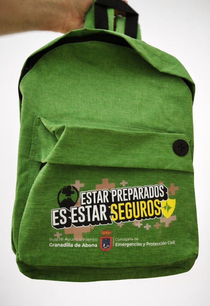 Al término del acto se repartieron mochilas de color verde con el lema “Estar preparados es estar seguros” y que en su interior contenían unas gafas de protección contra la ceniza Y mascarillas FPP2.