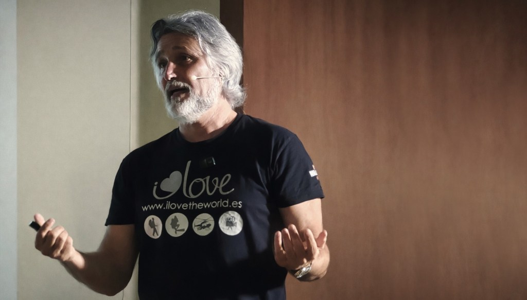 Escalero expuso su propia experiencia en la Isla Bonita y algunas de las incontables y emotivas historias que conoció directamente de los damnificados, a quienes ayudó tomando fotos aéreas en 360 grados de manera altruista -un servicio que no daba la Administración pública- para cientos de familias, con quienes estableció unos vínculos que aún hoy permanecen.