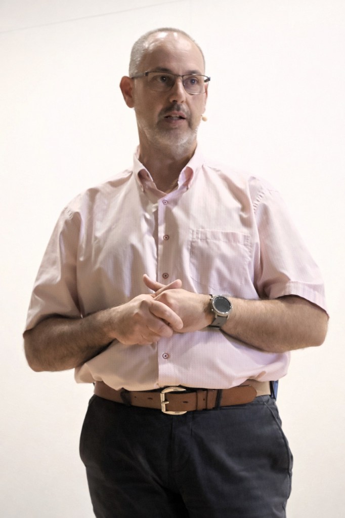 Durante su exposición, repasó de forma divulgativa la actividad volcánica histórica de Tenerife, los diferentes tipos de erupciones —unas más peligrosas que otras— y los principales peligros asociados al vulcanismo —coladas, ceniza, gases, sismicidad o flujos piroclásticos— y sus efectos sobre la salud, las infraestructuras, la agricultura y el transporte.