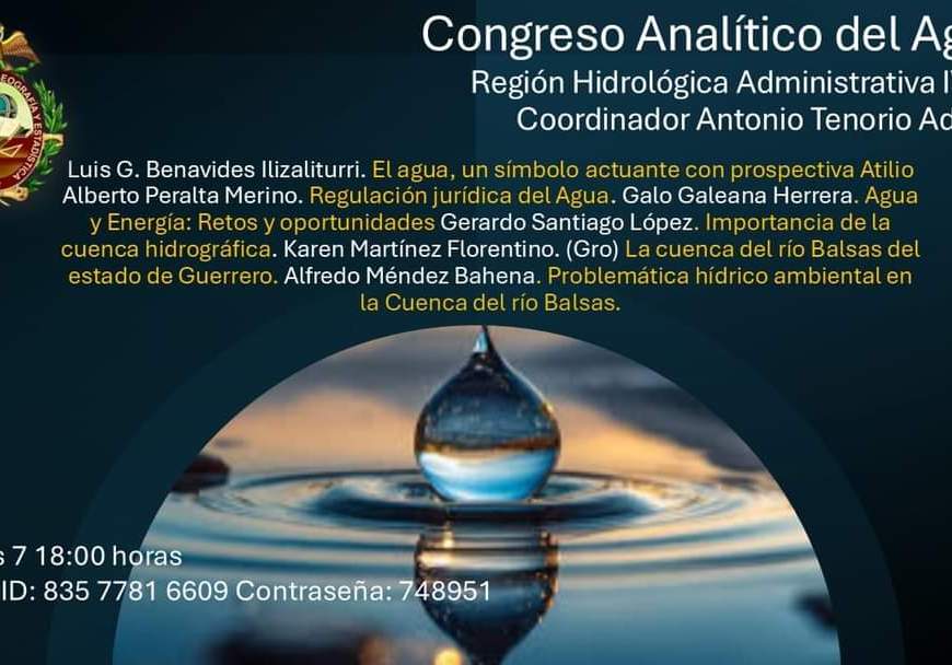 7 de noviembre a las 18 horas inicia trabajos laREGIÓN HIDROLÓGICA IV COORDINADOR ANTONIO TENORIO CONGRESO ANALÍTICO DEL AGUATime: Nov 7, 2024 06:00 PM Mexico CityJoin Zoom Meetinghttps://us06web.zoom.us/j/83577816609?pwd=v408zaUdmbFAPtmbJAspVlcRlUlRo7.1Meeting ID: 835 7781 6609Passcode: 748951 Continúa leyendo Inicia Congreso Analítico del Agua