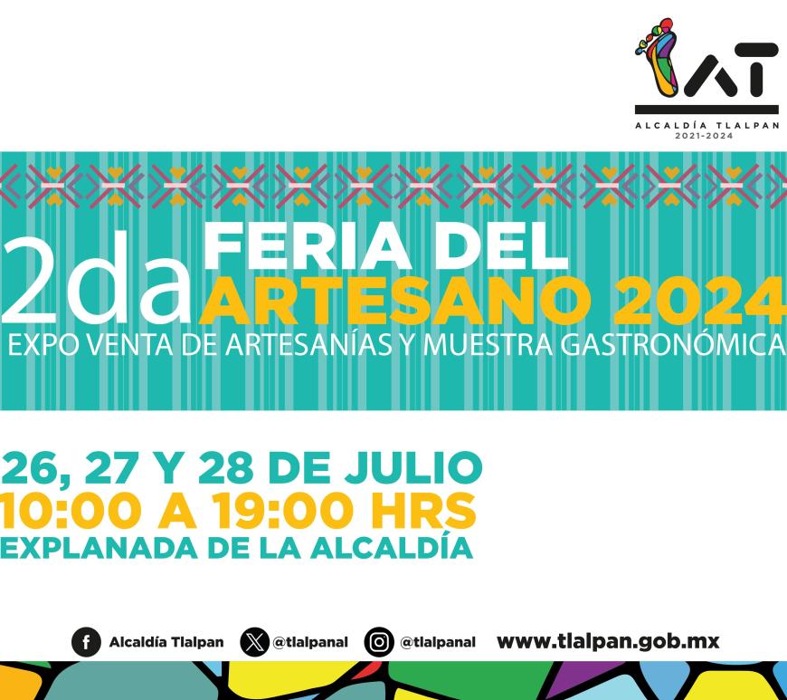 En la Alcaldía de Tlalpan, este próximo fin de semana del viernes 26, sábado 27 y domingo 28 de Julio será «la Segunda Feria del Artesano». Ciudad de México 25 de julio del 2024 Emprendedores artesanos de Tlalpan, nos haremos presentes con nuestros productos elaborados con cariño y entusiasmo para que lleguen a sus hogares, desde una planta, joyería, rompopes de sabores, quesos, salsas, aceites … Continúa leyendo Segunda Feria del Artesano