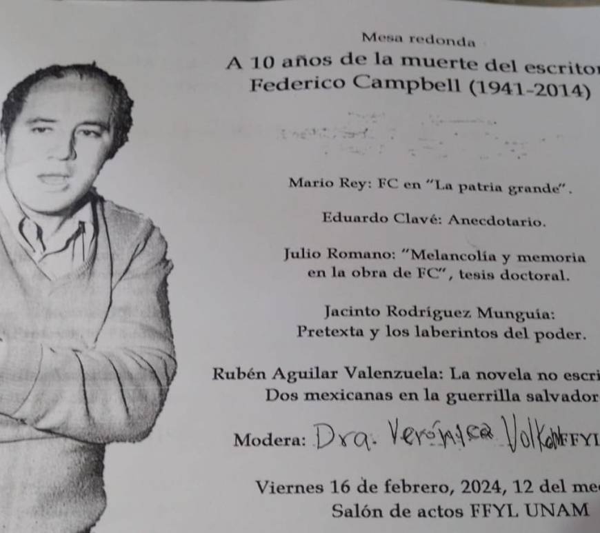 Redacción Ciudad de México 9 de febrero del 2024 El 15 de febrero de 2014, el escritor tijuanense Federico Campbell Quiroz falleció en el hospital Mocel, de la Ciudad de México, a causa de influenza H1N1. Será homenajeado en su ciudad natal, Centro Cultural Tijuana (CECUT), con bombo y platillo el jueves 15. De igual forma, ese día en la Universidad de Sonora en Hermosillo. … Continúa leyendo Homenaje a Federico Campbell Quiroz