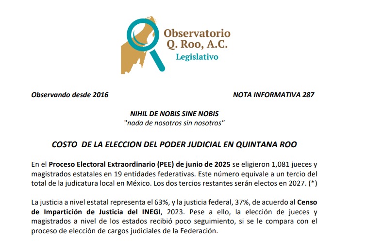 DOS MDP COSTÓ CADA JUEZ EN QUINTANA ROO• Quinto lugar nacional en recursos destinados por cada cargo, en elecciones judiciales estatales de 2025. Por: Jorge A. Martínez Lugo.Quintana Roo 11 de noviembre del 2025 Quintana Roo se colocó en el quinto lugar nacional en cuanto a los estados que otorgaron mayor monto presupuestal al proceso de elección del Poder Judicial, considerando el costo por cada … Continúa leyendo “La Última Palabra”