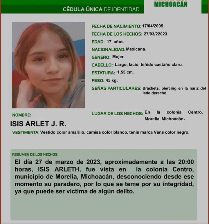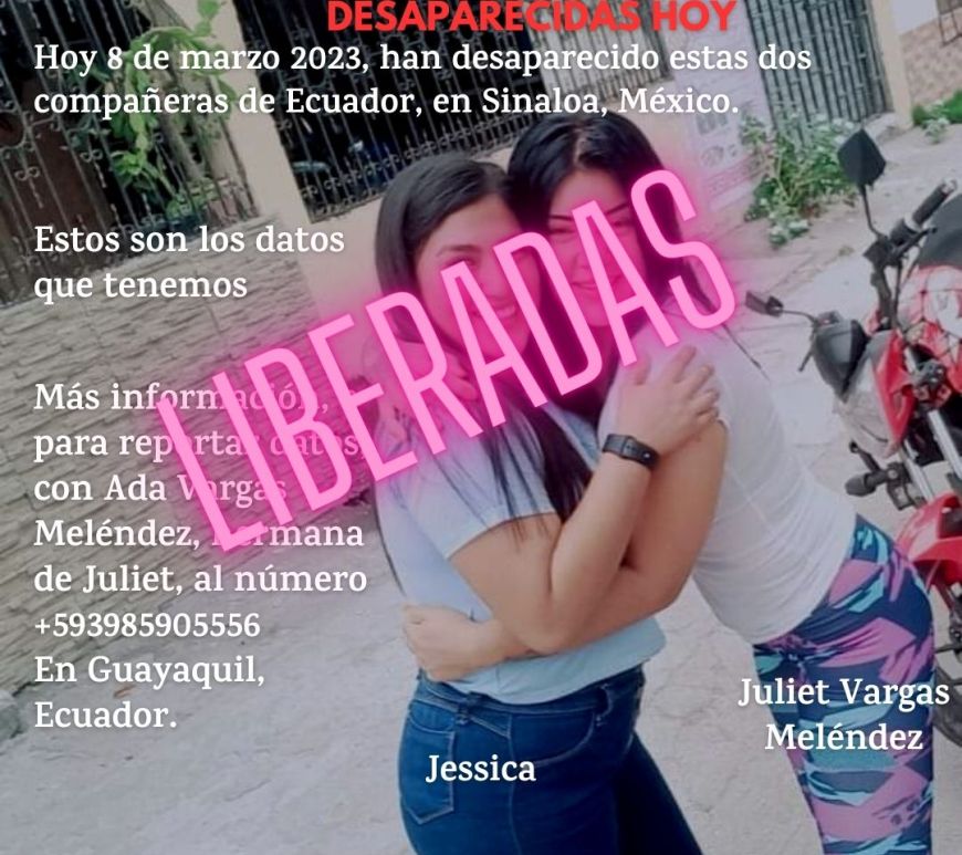 Juliet Vargas Meléndez estába vestida de jean celeste, chimpa negra zapatos deportivos negros. Sus familiares dicen que ella salió de algún punto de Sinaloa rumbo a Querobabi Sonora. Juliet, Jessica y 5 amigos más están secuestrados desde el 7 de marzo en Sinaloa. Después de pagar su rescate fueron liberadas junto con otros extranjeros el 11 de marzo. Continúa leyendo Fueron liberadas por sus secuestradores