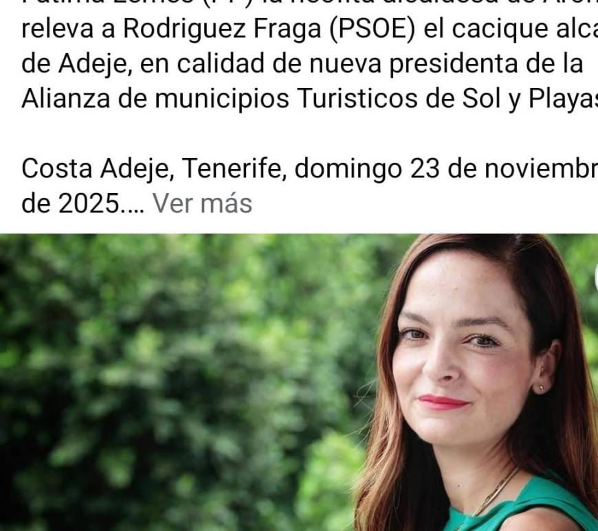 Asociación de Taxistas Asalariados Costa Adeje. Fotografía Facebook.  Costa Adeje, Tenerife, domingo 23 de noviembre de 2025. Fatima Lemes (PP) la neofita alcaldesa aronera, esperamos que NO se deje embaucar NI manipular por el cacique alcalde adejero y mafioso presidente PSOE canario, Jose Miguel Rodriguez Fraga, instalado en la grosera impunidad, experto en latrocinio y corrupcion, iba para sacerdote y dejo la sotana por los … Continúa leyendo Fatima Lemes (PP) la neofita alcaldesa de Arona, releva a Rodriguez Fraga (PSOE) el cacique alcalde de Adeje, en calidad de nueva presidenta de la Alianza de municipios Turisticos de Sol y Playas.