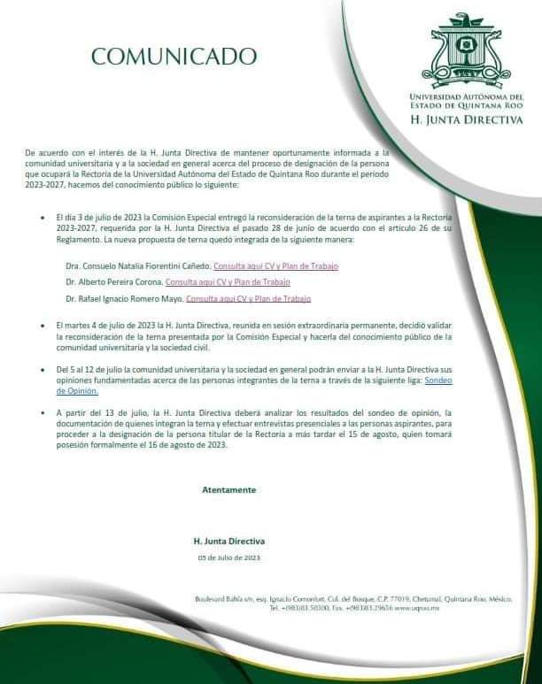 • La aspirante más completa de la terna y le favorecen los “tiempos de mujeres”.Al igual que la terna frustrada había un perfil notoriamente más completo, en la segunda terna para ocupar la Rectoría de la Universidad Autónoma de Quintana Roo, es Natalia Fiorentini Cañedo, quien tiene mayor posibilidad de convertirse en la primera rectora de la autonomía. Pero quizá el factor de mayor peso … Continúa leyendo ¡Es Natalia!
