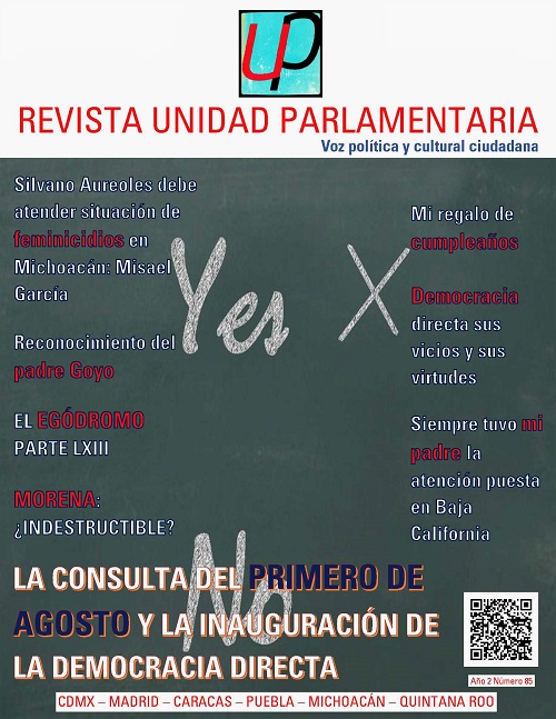 Editorial 19 de julio de 2021 Estamos más cerca del primero de agosto, día de la Consulta Popular, el próximo ejercicio ciudadano de democracia participativa en la que se preguntará sobre el juicio a los expresidentes en México; en este caso estamos hablando específicamente, más no en los spots, de: Carlos Salinas, Ernesto Zedillo, Vicente Fox, Felipe Calderón y Enrique Peña Nieto. Desde el pasado … Continúa leyendo Revista Unidad Parlamentaria # 85 – LA CONSULTA DEL PRIMERO DE AGOSTO Y LA INAUGURACIÓN DE LA DEMOCRACIA DIRECTA