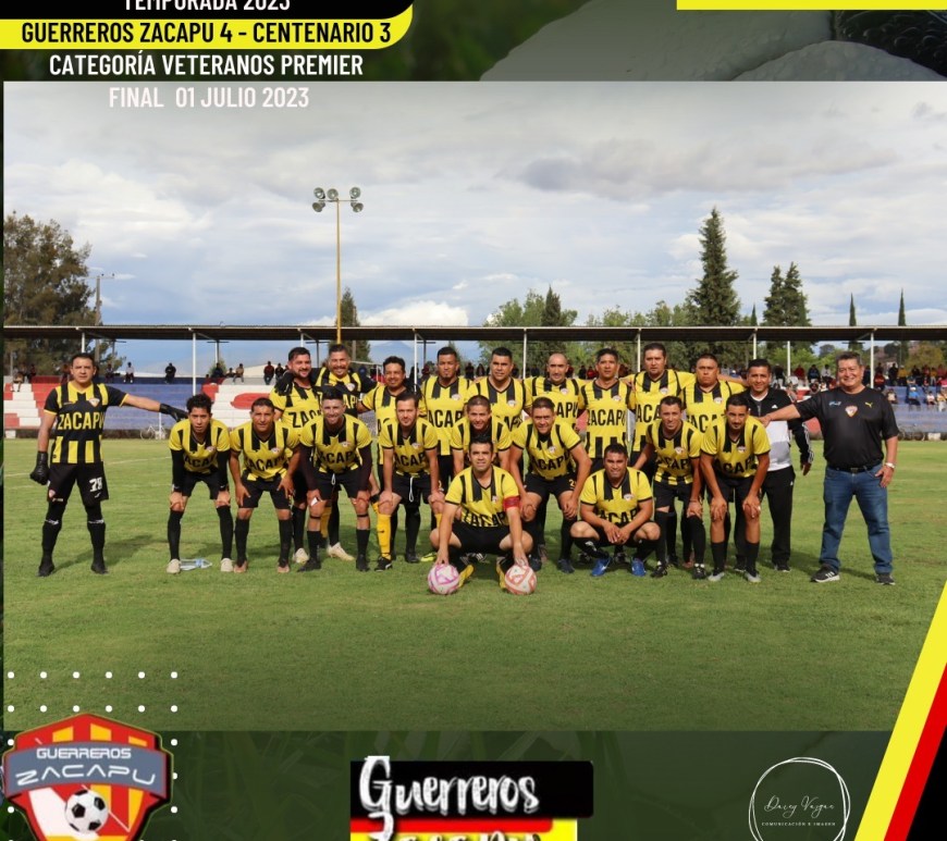 Zacapu, Michoacán, 23de julio de 2023De la Redacción La tarde de este sábado 1o de julio se disputó la Gran Final de la Temporada 2023 en la Categoría Veteranos Premier, donde Guerreros Zacapu se coronó como campeón consecutivo con 4 goles, 2 anotados por José Luis Calderon , “El Halcón “, uno de Nachito Zamora y uno más de Hugo Quezada. Por su parte el … Continúa leyendo Zacapu Campeón de la Temporada 2023 en su Categoría Veteranos Premier