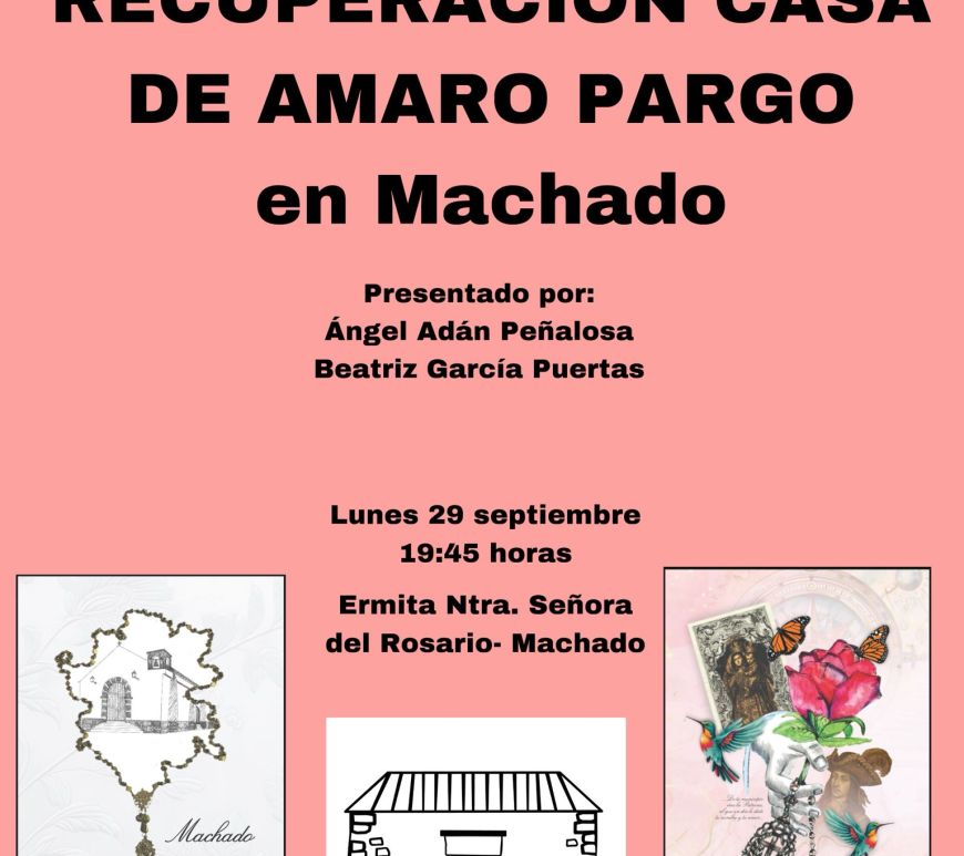 RedacciónMachado población del municipio de El Rosario, en la isla de Tenerife, Canarias,25 de septiembre del 2025 Los Arquitectos Técnicos Beatriz García Puertas y Ángel Adán Peñalosa, darán una conferencia donde expodran su iniciativa acerca de recuperar la casa de Amaro Pargo en Machado.. Esto sucederá el próximo 29 de septiembre, lo harán ante el pueblo de Machado en el municipio del Rosario,aprovechando las actividades … Continúa leyendo Conferencia sobre la recuperación de la casa de Amaro Pargo en Machado
