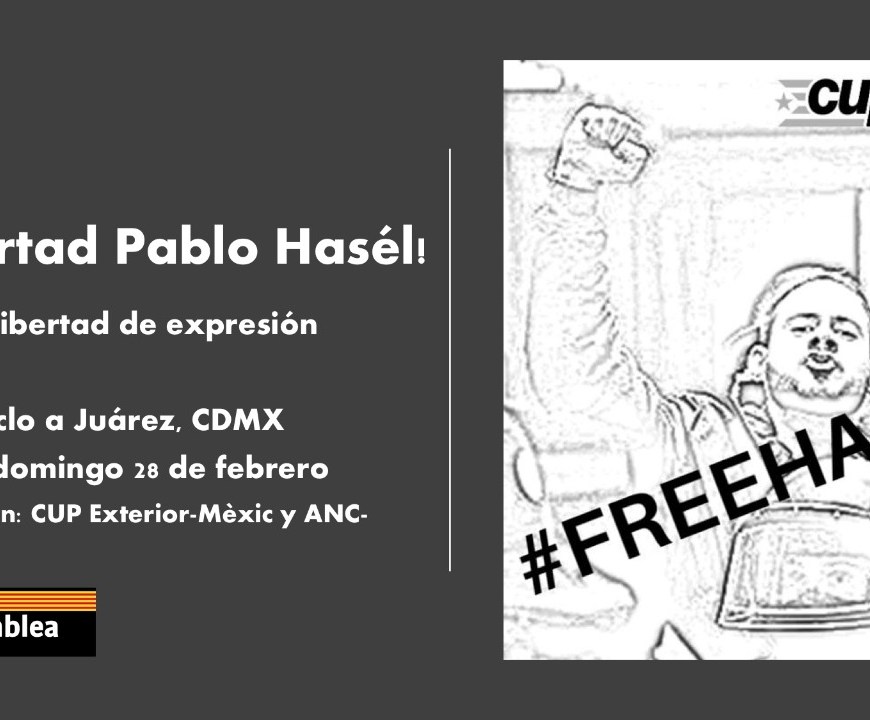 La comunidad catalana en México convoca concentración este domingo, 28 de febrero, a las 12h, en el Hemiciclo a Juárez de la Ciudad de México El pasado martes 16 de febrero, en la ciudad de Lleida, el Estado Español metió en la cárcel al rapero catalán Pablo Hasél, condenado por el delito de injurias a la Corona. Esta detención e ingreso en prisión de un … Continúa leyendo Libertad para Pablo Hasél